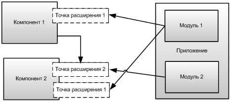 - Расширяемый модуль – модуль системы, который использует определенный набор точек расширения;