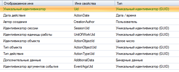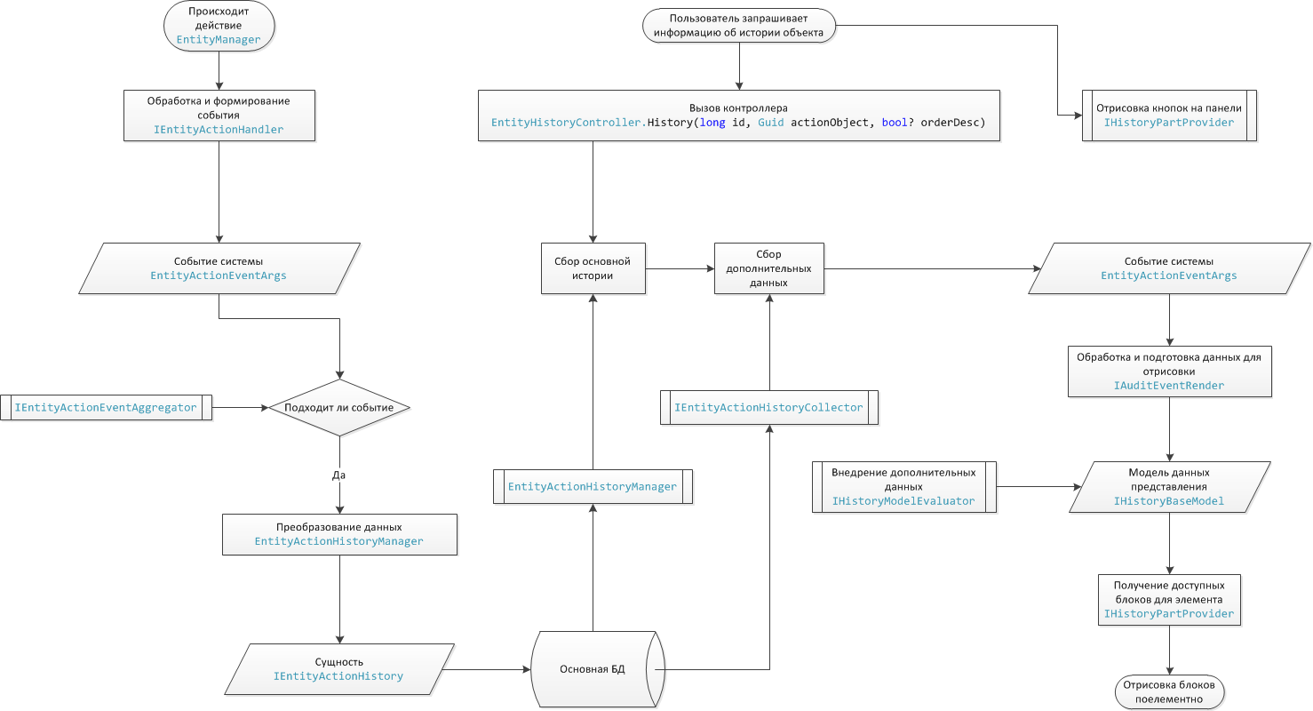 Ниже приведена схема данных, используемая для хранения истории в базе (сущность IEntityActionHistory).