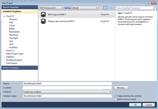 Запустите Visual Studio. Выберите меню Файл – Проект – Visual C# - ELMA. (рис. 1)