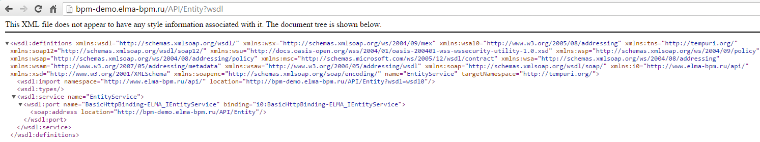 Для всех сервисов установлено корневое пространство имен http://www.elma-bpm.ru/api/