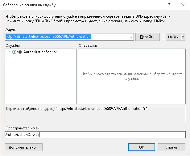 - Для WCF SOAP адрес формируется из имени сервиса без постфикса Service, для AuthorizationService это будет ~/API/Authorization (например, http://bpm-demo.elma-bpm.ru/API/Authorization).