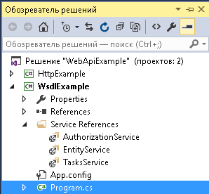 Сделаем все те же действия, только используя WSDL-сервисы. Чтобы их использовать, нужно добавить их в проект. Для добавления в проект нажмите правой кнопкой мыши на Refernces – AddServiceReference – в поле «Адрес» вводите нужную ссылку – кликаете на кнопку перейти («GO») – в случае успешного перехода нажимаете «ОК».