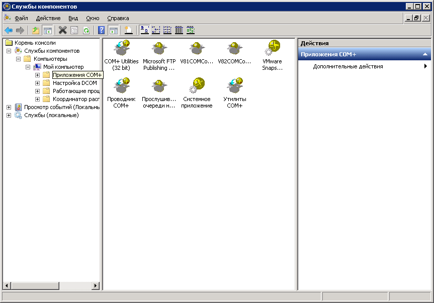 - Службы компонентов – Компьютеры – Мой компьютер – Приложения COM+.