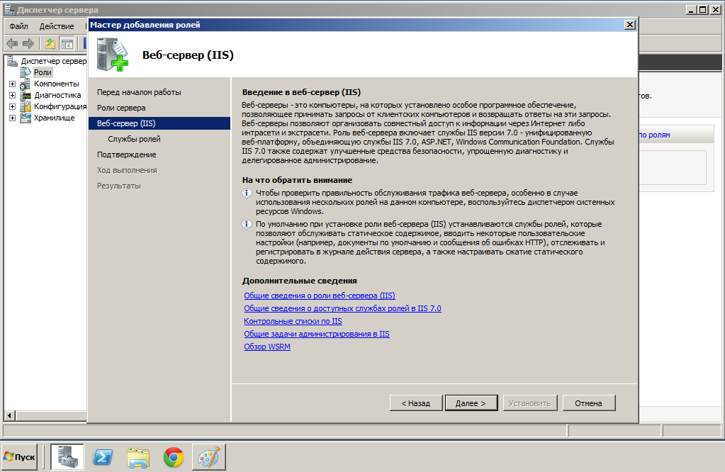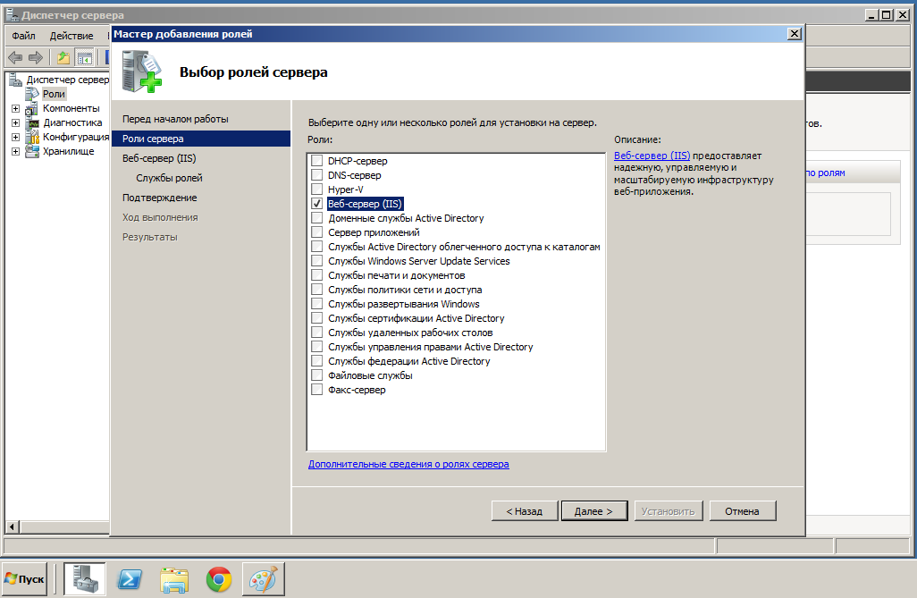 3. Устанавливаем флажок Веб-сервер(IIS), нажимаем на кнопку Далее.
