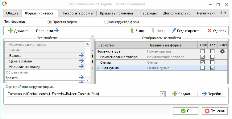 Динамические формы задач БП: Подсчет суммы элементов блока
