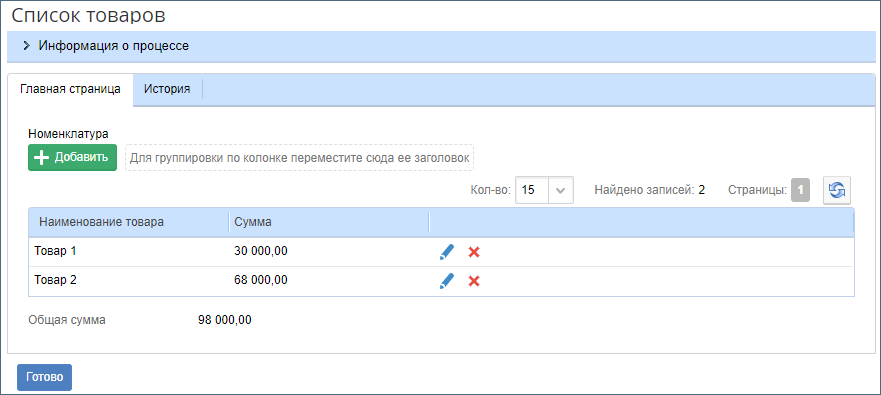 При добавлении нового элемента или сохранении изменений в уже существующем элементе блока выполняется сценарий. Результат выполнения сценария представлен на рисунке ниже.