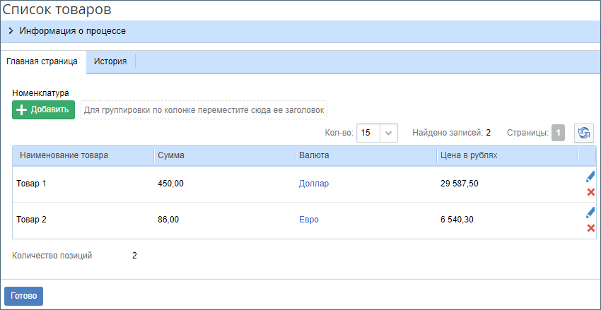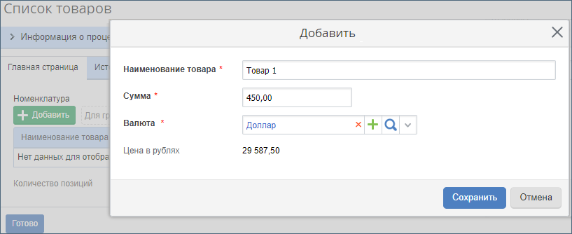- Вычисление цены и запись её в поле Цена в рублях элемента блока Номенклатура.