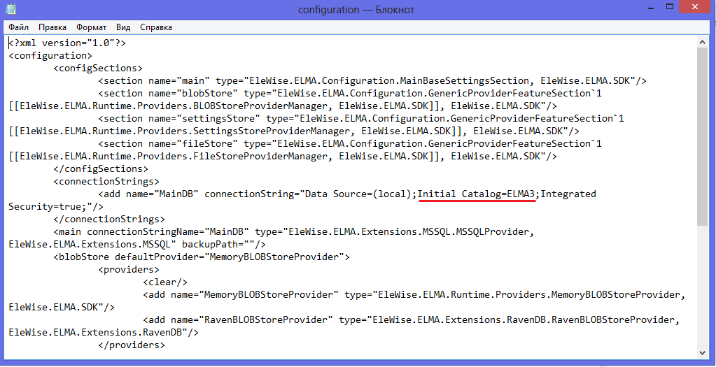 Информация о подключении сервера ELMA к базе данных указывается в конфигурационном файле configuration.config (папка ELMA/UserConfig). Соответственно, можно изменить путь до базы (для FDB) или имя БД (для SQL) в случае создания новой БД. Для FDB – новую БД необходимо также переместить в папку UserConfig.