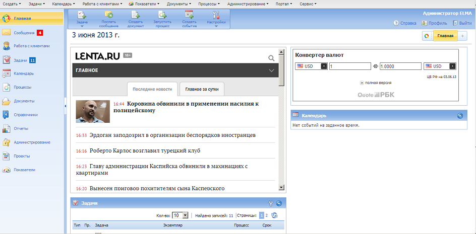 В сети можно найти множество готовых решений: новостных лент, котировок, прогнозов погоды, информации о билетах и т.д. С помощью этого портлета, их можно встроить в ELMA за несколько минут.