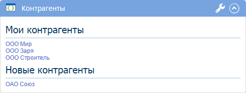 В данном случае в портлете будут отображены контрагенты, в которых ответственным является текущий пользователь, и все созданные за текущий день контрагенты без привязки к ответственному.