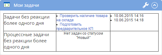 В данный портлет будут выводиться задачи, которые исполнитель не открывал более суток. Задачи разделены на процессные задачи и обычные задачи, результат оформлен в виде таблицы.