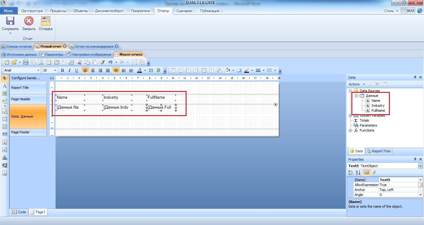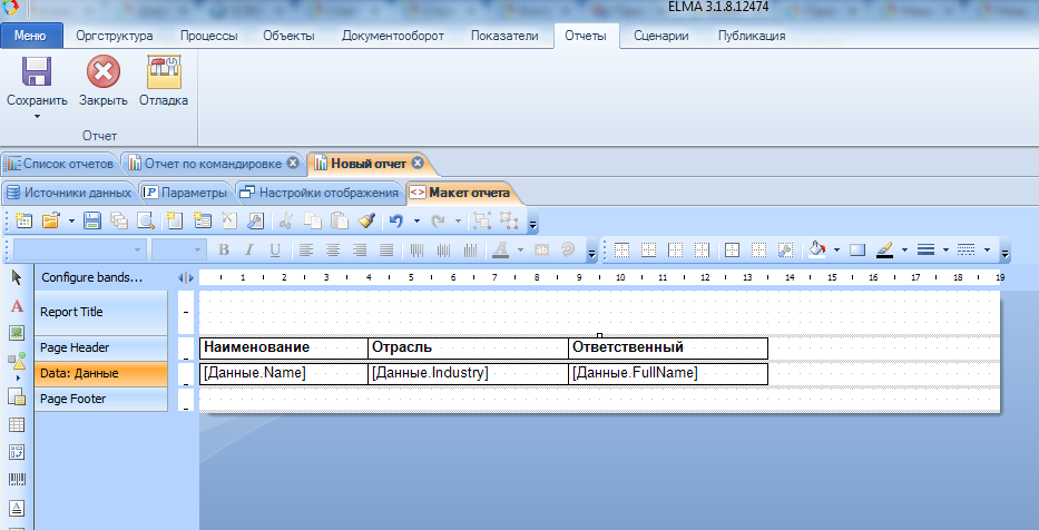 Для проверки полученного отчета можно запустить режим отладки по соответствующей кнопке – Отладка.
