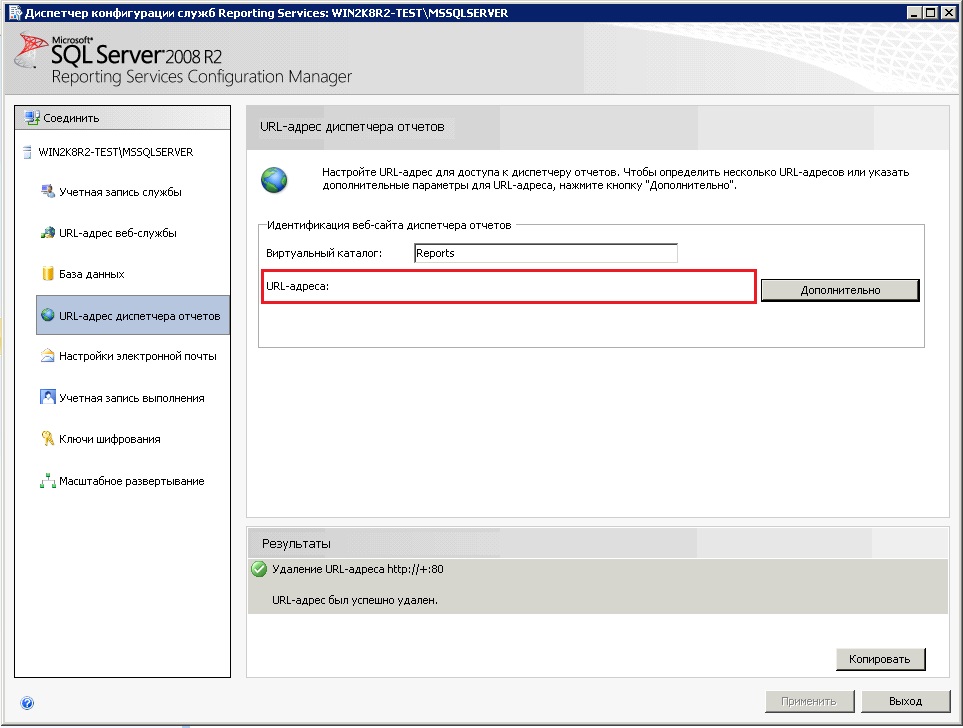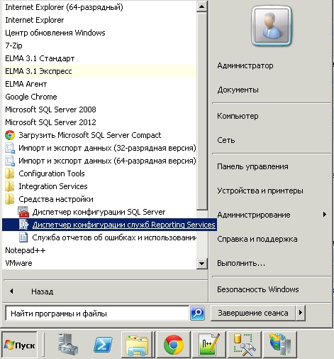 1. Открыть Диспетчер конфигурации служб ReportingServices: