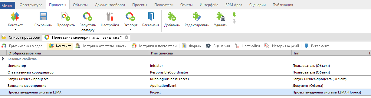 Рис. 3. Контекстная переменная "Проект" в Дизайнере ELMA