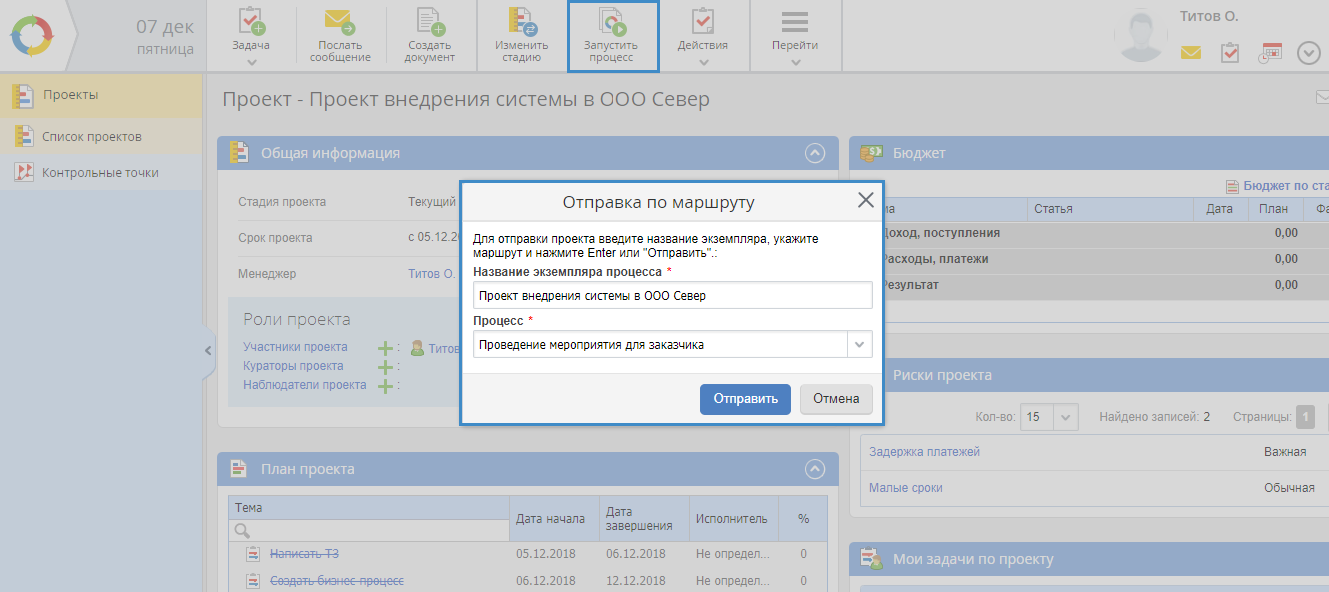 Подробнее о запуске бизнес-процесса со страницы проекта смотрите соответствующий раздел справки.