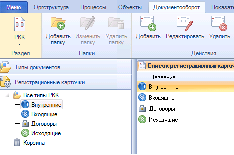 В системе ELMA есть четыре стандартных РКК: Входящие, Исходящие, Внутренние, Договоры. Кроме стандартных РКК, можно создавать свои. Например, по ГОСТу, для заявлений граждан есть некоторые обязательные атрибуты, которые должны быть присвоены при регистрации.