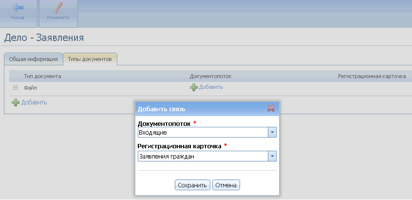 Для того чтобы настроить регистрацию по собственной РКК, в настройках дела необходимо указать возможность регистрации данного типа документа по этой РКК.