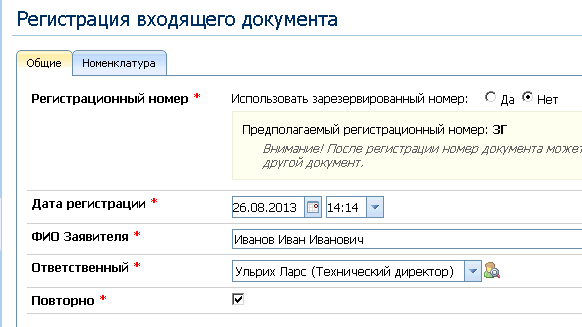 В результате регистрация документа по этой РКК будет выглядеть следующим образом: