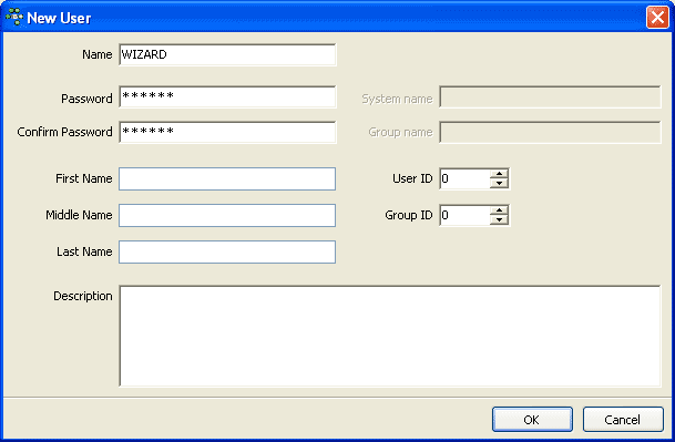 Нажмите на кнопку Add, в открывшемся окне New User введите имя пользователя (имя пользователя вы можете вводить в любом регистре, символы все равно будут появляться в верхнем регистре) и дважды введите пароль в поля Password и Confirm Password. Нажмите на кнопку ОК. В список будет добавлена новая учетная запись пользователя.