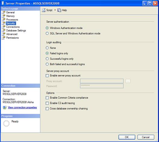 Как известно, в SQL Server можно выбрать один из двух типов аутинтификации: Windows Authentication (Аутентификация Windows) или SQL Server Authentication (Аутентификация SQL Server). Сменить режим аутентификации на сервере с помощью SSMS (SQL Server Management Studio) либо с помощью EM (Entreprise Manager) достаточно легко. Для этого необходимо в свойствах сервера перейти на закладку Security и установить флажок в нужное поле.