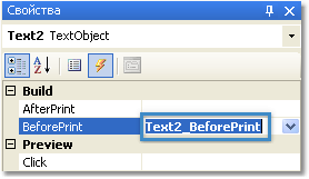 Объект Отчет также имеет события. Выбрать этот объект можно следующими способами: