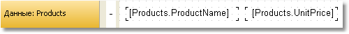 Чтобы вставить в скрипт значение поля Products.UnitPrice, перетащите его из окна Данные. При этом в скрипт будет вставлена строка: