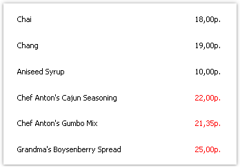 Если запустить отчет, мы увидим, что все продукты, имеющие стоимость > 20, выделены красным цветом: