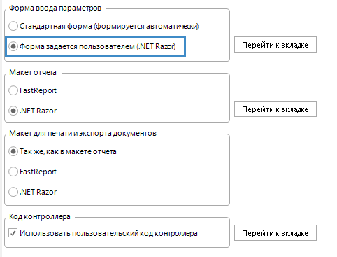 Для того, чтобы отфильтровать данные в выпадающем списке такого параметра, на вкладке отчета Настройки отображения, необходимо выбрать Форму ввода параметров Форма задается пользователем (.NET Razor) и перейти к вкладке.