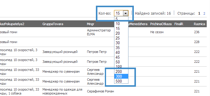В результате получим – в количество отображаемых записей добавляются 200, 300, 500: