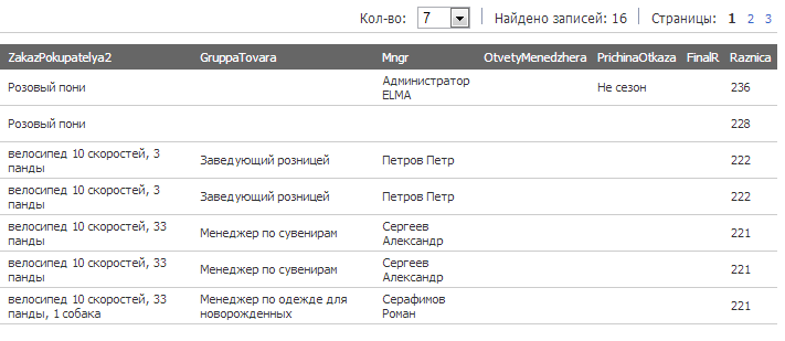 Для наглядного примера, отобразим, к примеру, 7 записей: source.PagerSettings.PageSize = 7;