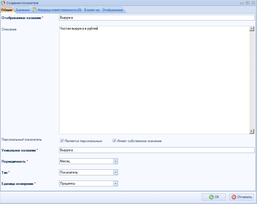 Рис. 2. Создание показателя. Вкладка "Общие"