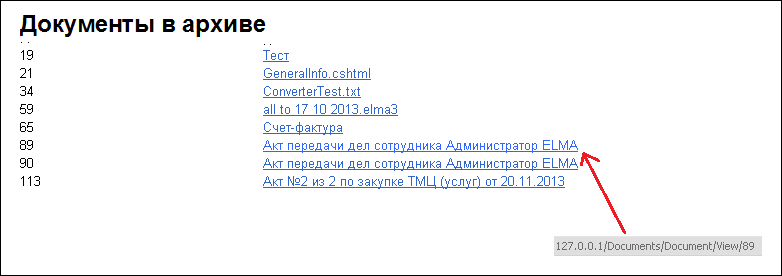 Запустите отладку и в веб-приложении будет отображен отчет (рис. 10), в котором имена документов будут выглядеть как гиперссылки, а нажатие на них открывает страницу соответствующего документа.