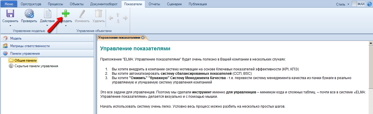 Панели управления создаются в Дизайнере на вкладке Показатели – Панели управления:
