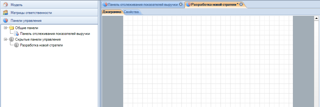 Для удобства разработки панелей в Дизайнере ELMA можно создавать черновики в разделе Скрытые панели управления: