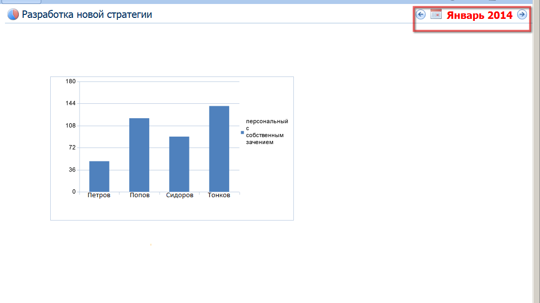 В этом виде диаграммы используется один показатель, рекомендуется брать показатели простые или персональные с собственным значением. Данные о показателе показываются за текущий период.