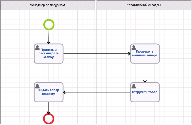 Рис. 7. Созданный процесс с зонами ответственности и стартовым событием