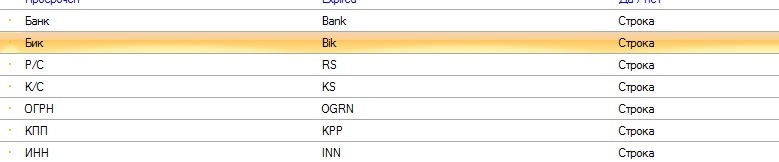 В текущем примере при создании документа типа Договор, автоматически подставляются реквизиты компании. Сценарии находится в переменных типа Строка, названия атрибутов: Банк (Bank), Бик (Bik), Р/С (RS), К/С (KS), ОГРН (OGRN), КПП (KPP), ИНН (INN), сценарии размещены в полях Сценарий вычисления значения. Атрибуты документа приведены ниже (Рис. 12). В примере осуществляется отображение в строках реквизитов компании, данные подставляются в атрибуты заранее вручную. Этот пример демонстрирует вычисление значений уже при создании документа, а не при сохранении.