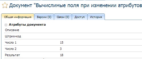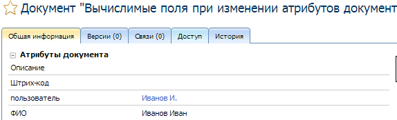 Важно! Вычисление значения атрибутов осуществляется при создании, сохранении и изменении (после нажатия на кнопку Сохранить) документа.