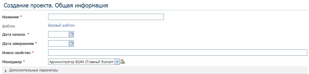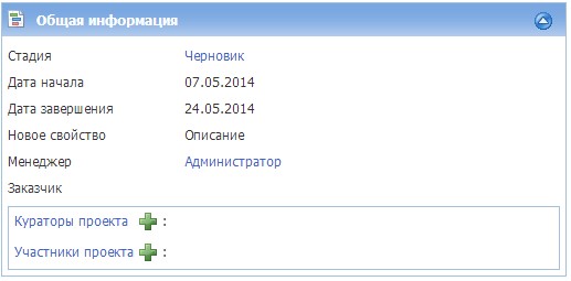 При таком написании свойство Новое свойство, созданное нами в объекте Проект, будет доступно для редактирования, но не обязательно для заполнения. Выглядеть это будет так: