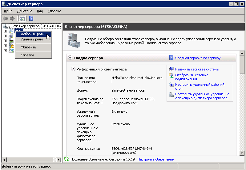 Добавление ролей Windows Server