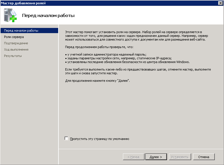 3. В открывшемся диалоговом окне Мастер добавления ролей (рис. 2), необходимо нажать на кнопку Далее .