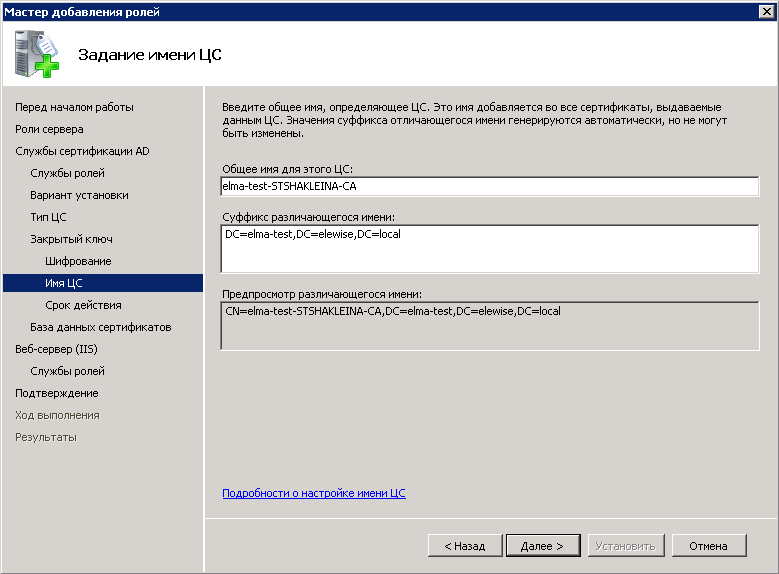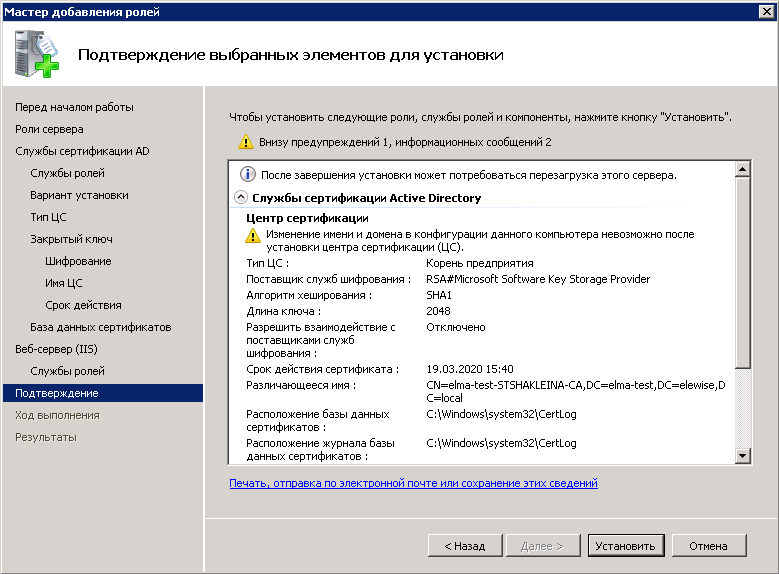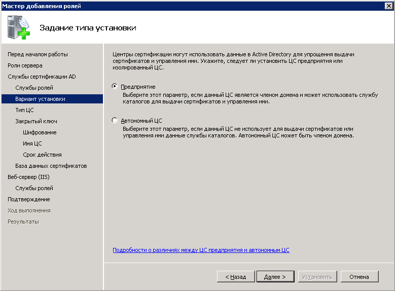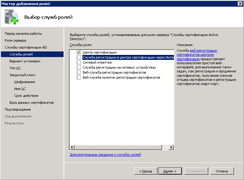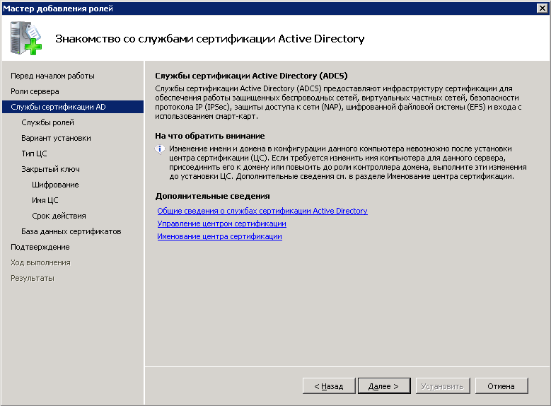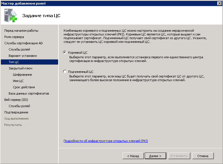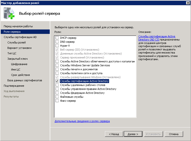 Создание и настройка центра сертификации состоит из нескольких этапов.