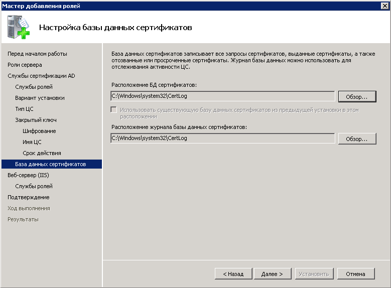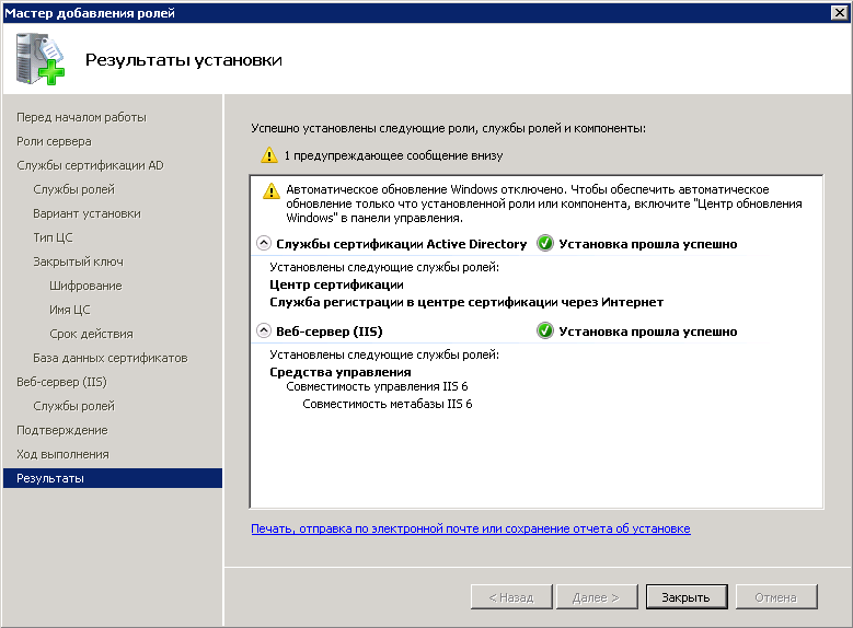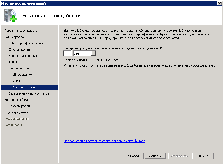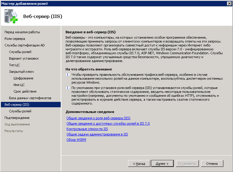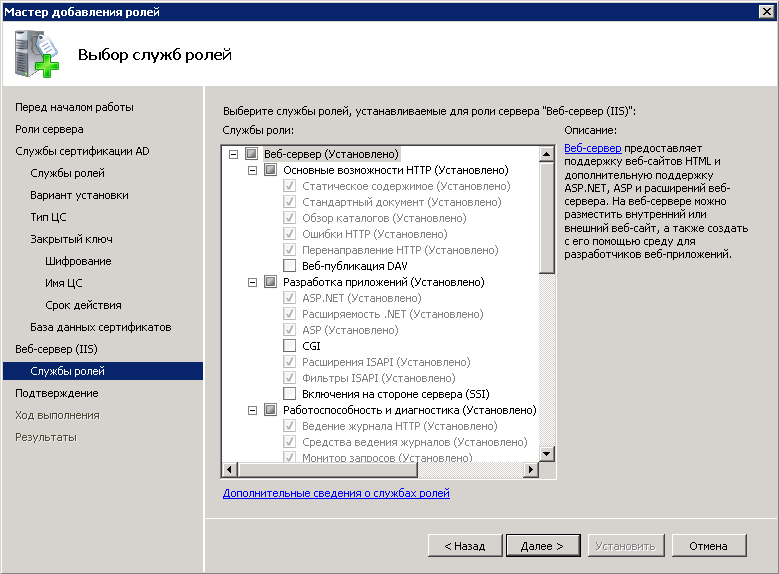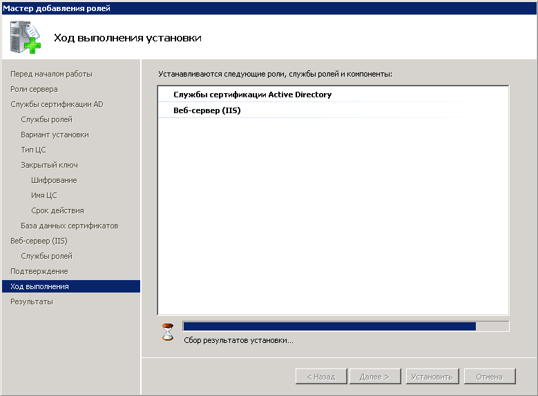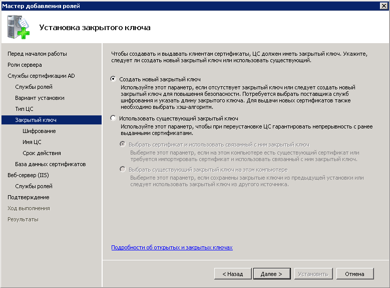 Создание и настройка центра сертификации состоит из нескольких этапов.