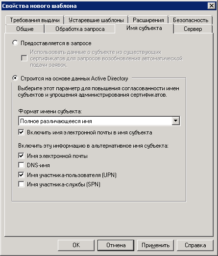 Рис. 27. Свойства шаблона. Вкладка "Имя субъекта"