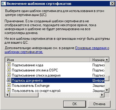 Рис. 33. Диалоговое окно "Включение шаблонов сертификатов"