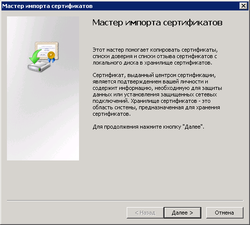 Рис. 38. Диалоговое окно "Мастер импорта сертификатов"