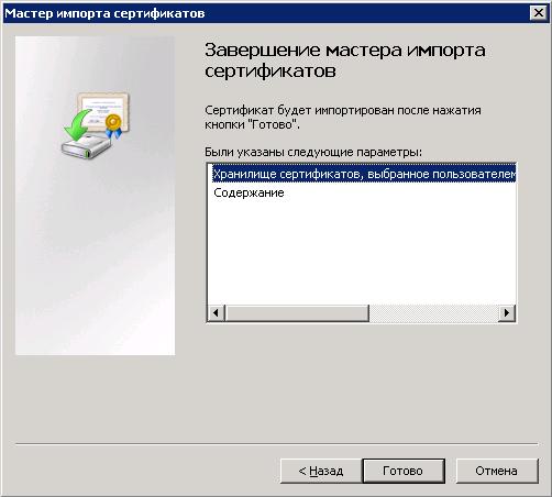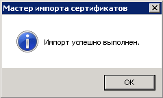 Рис. 41. Диалоговое окно "Завершение мастера импорта сертификатов"