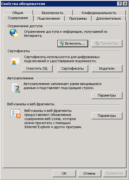 В открывшемся диалоговом окне (рис. 54) необходимо перейти на вкладку Содержание и в блоке настроек Сертификаты нажать на кнопку Сертификаты .