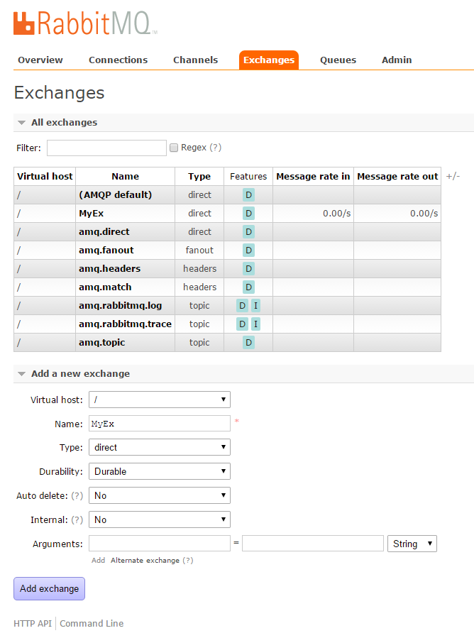 Далее требуется создать новую точку доступа на вкладке Exchange. Создаваемая точка доступа должна иметь тип direct (столбец Type).