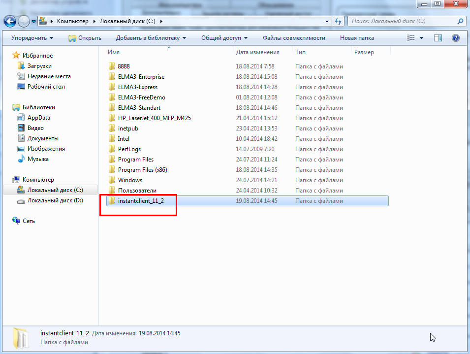 2. Поместить на локальный диск :C скаченную папку instantclient_11_2.7.